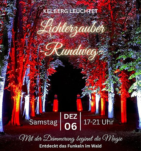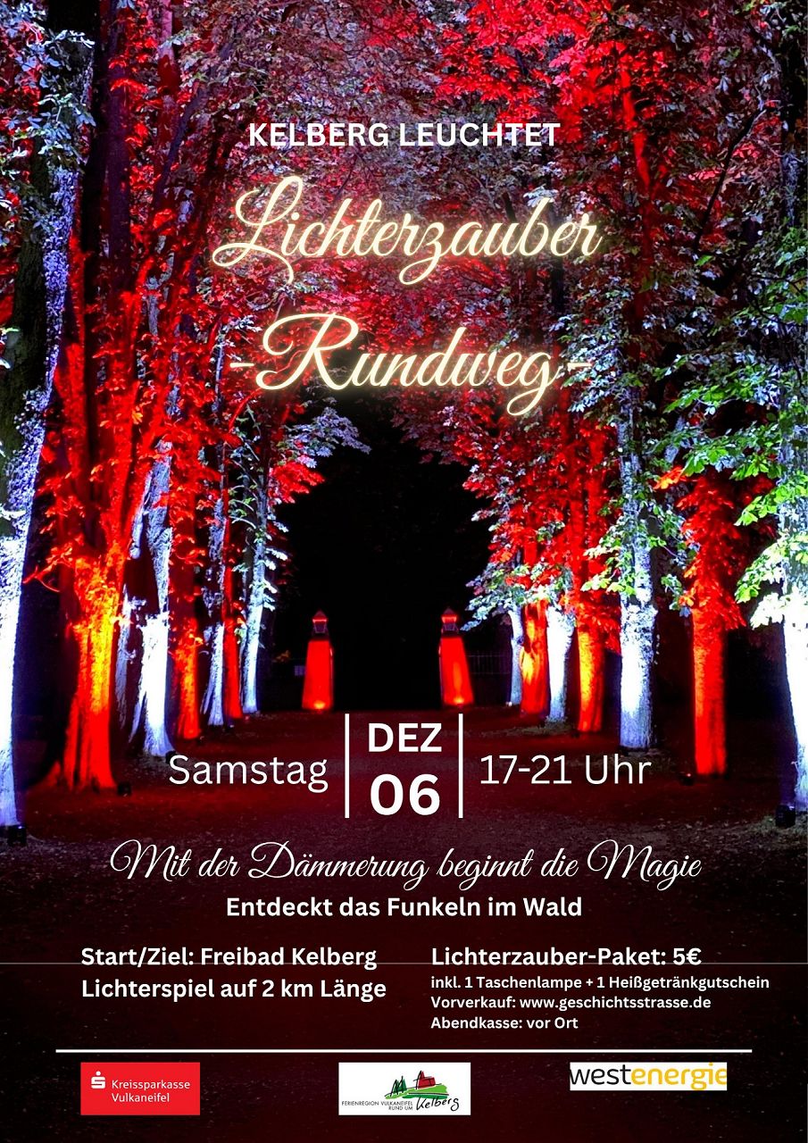 Die Ferienregion Kelberg lädt am Samstag, den 6. Dezember, erstmals in diesem Winter zum „Lichterzauber-Rundweg“ ein. Von 17:00 bis 21:00 Uhr führt ein rund zwei Kilometer langer Spaziergang durch die abendliche Natur und verwandelt die Dunkelheit in ein funkelndes Lichtermeer voller Magie und Adventsstimmung.